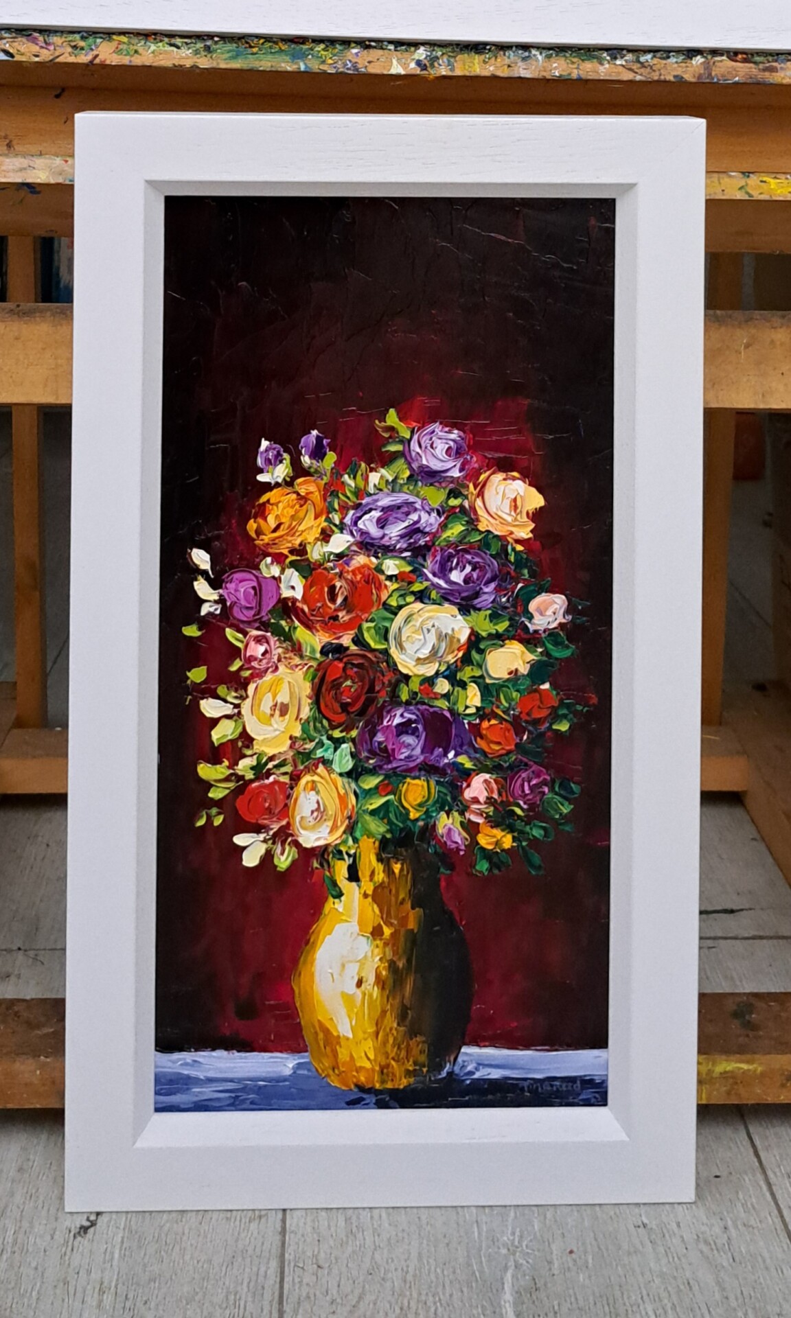 Roses on a rich velvet coloured background. Such a beautiful flower that always fills me with happiness to see and to paint!