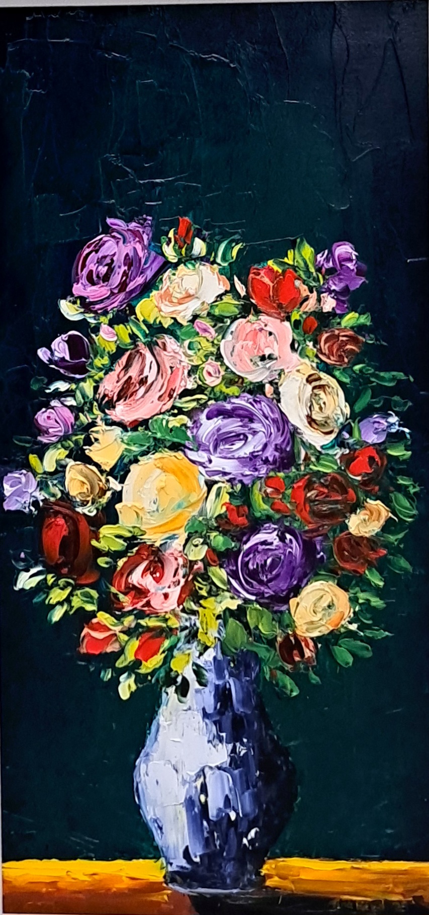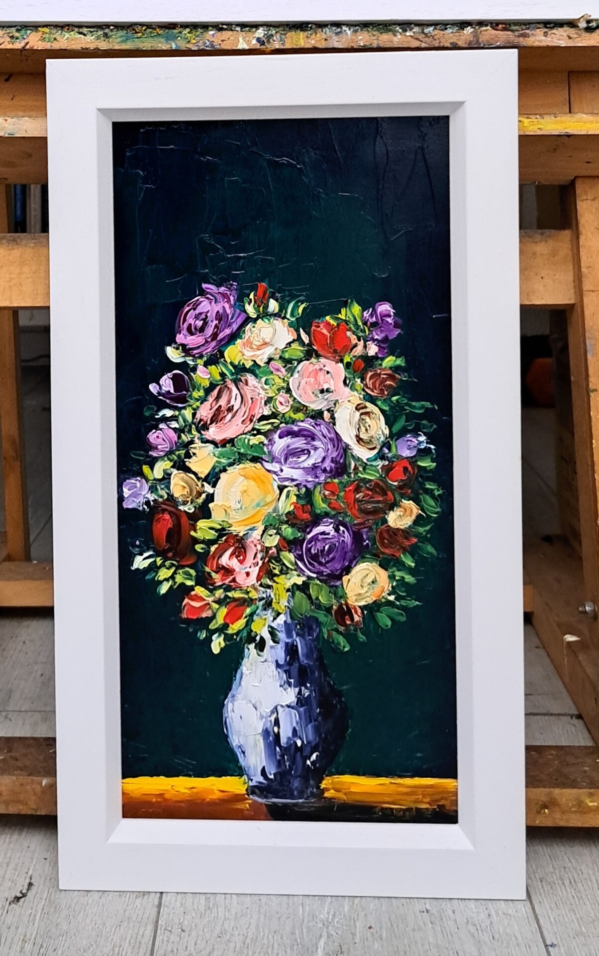 Roses on a rich velvet coloured background. Such a beautiful flower that always fills me with happiness to see and to paint!
